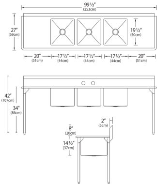Éviers à trois cuves