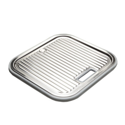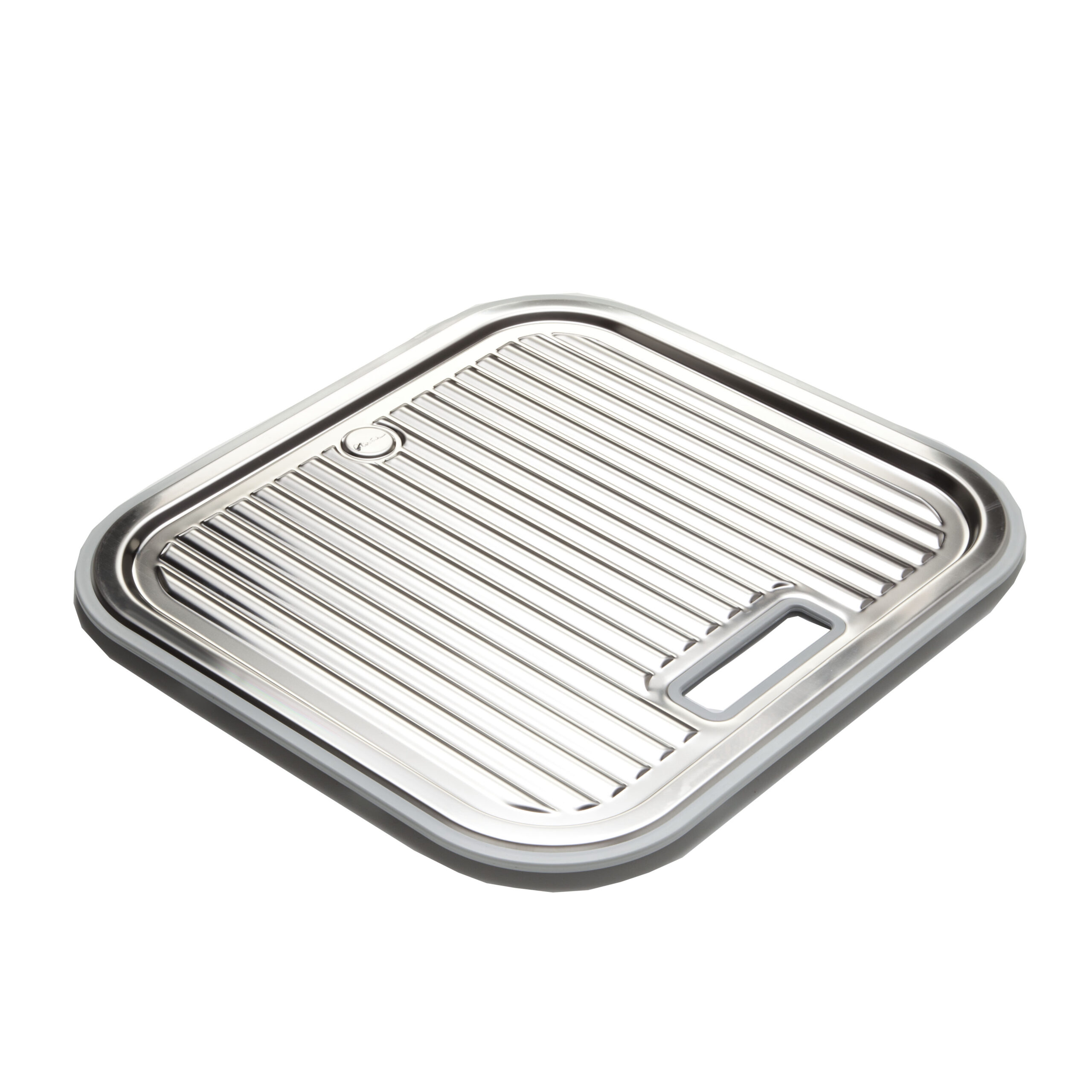 Plateau utilitaire en acier inoxydable. Dimensions hors-tout de: 14 ½ po x 15 7/10 po 5 1/10 po (37 cm x 40 cm x 13 cm), convient à la collection Canberra.